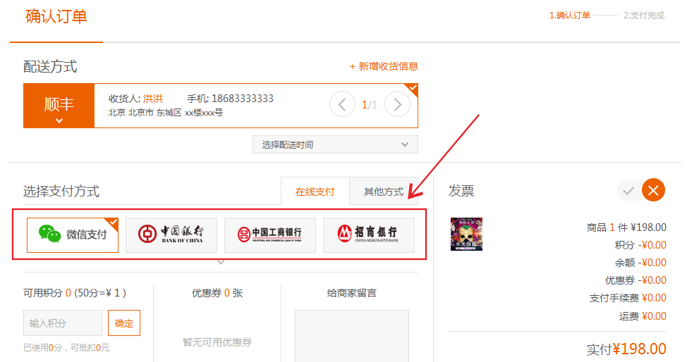 一般情况下,支付方式分为二种:在线网关、线下支付。